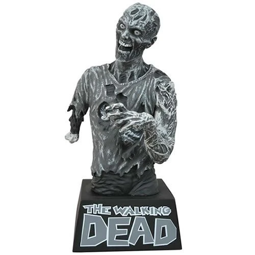 Detaillierte Schwarz/Weiß Büste eines Zombie-Biters aus dem erfolgreichen Comic The Walking Dead.