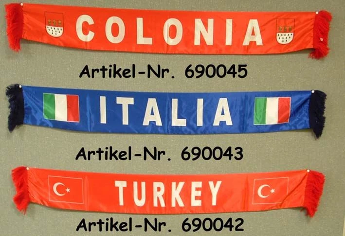 Auf dem Produktbild sind verschiedene Varianten zu sehen, der Artikel besteht aus einem einzelnen Fanschal der italienischen Variante.