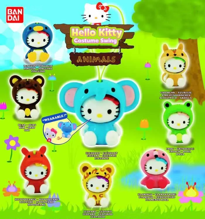 Acht Hello Kitty Mini Costume Swing Animals im Set.
