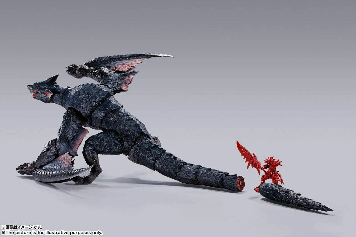 Nargacuga, eine fruchteinflössende Kreatur ausMonster Hunter World, endlich als bewegliche 30cm-Figur. Die S.H. MonsterArts-Serie, bekannt für realistische Details, ist stolz darauf, die erste Figur aus der Monster Hunter-Serie zu veröffentlichen. Eine Vielzahl an beweglichen Gelenken, inklusive abnehmbaren Schwanz, lassen diese Figur zum Leben erwecken und eine unglaubliche Anzahl an Szenarien lassen sich dadurch darstellen.Diese Figur wird inklusive diverser Körperteile, einem Jäger und einer Base geliefert.